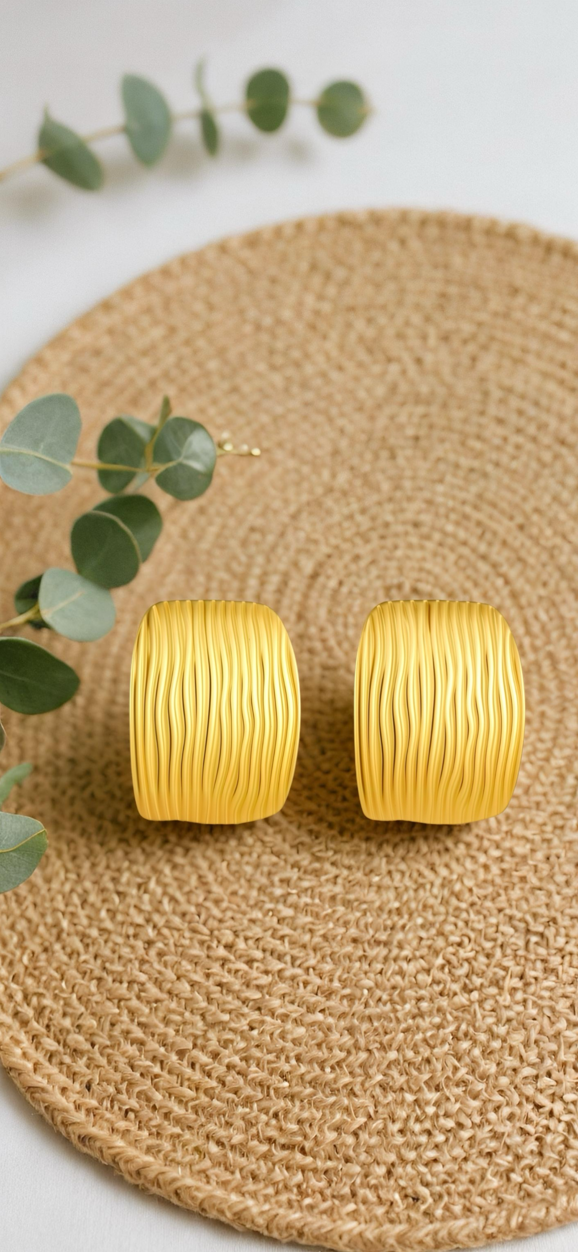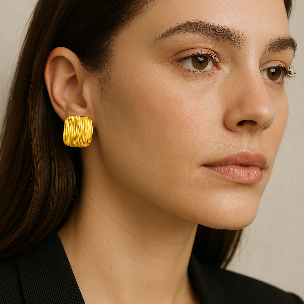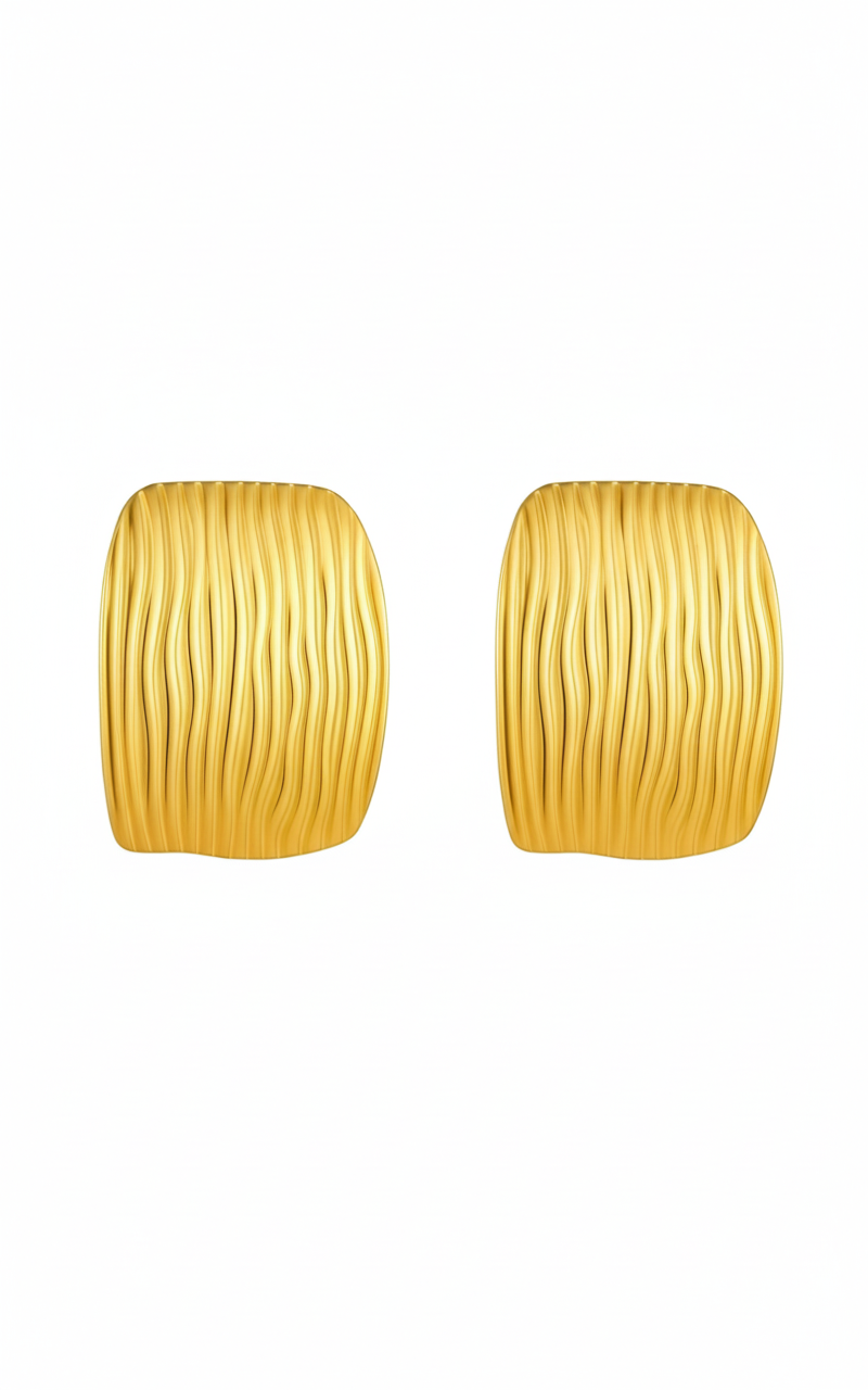 These luxury earrings made of stainless steel plated with 18K gold combine elegance and modernity. The vacuum plating process gives them lasting shine, while their lightweight of 15g ensures superior comfort. Perfect for all occasions, they are ideal for style-conscious women, featuring a minimalist graphic design that adds a subtle touch of boldness to enhance a clean look for everyday or evening wear.ย