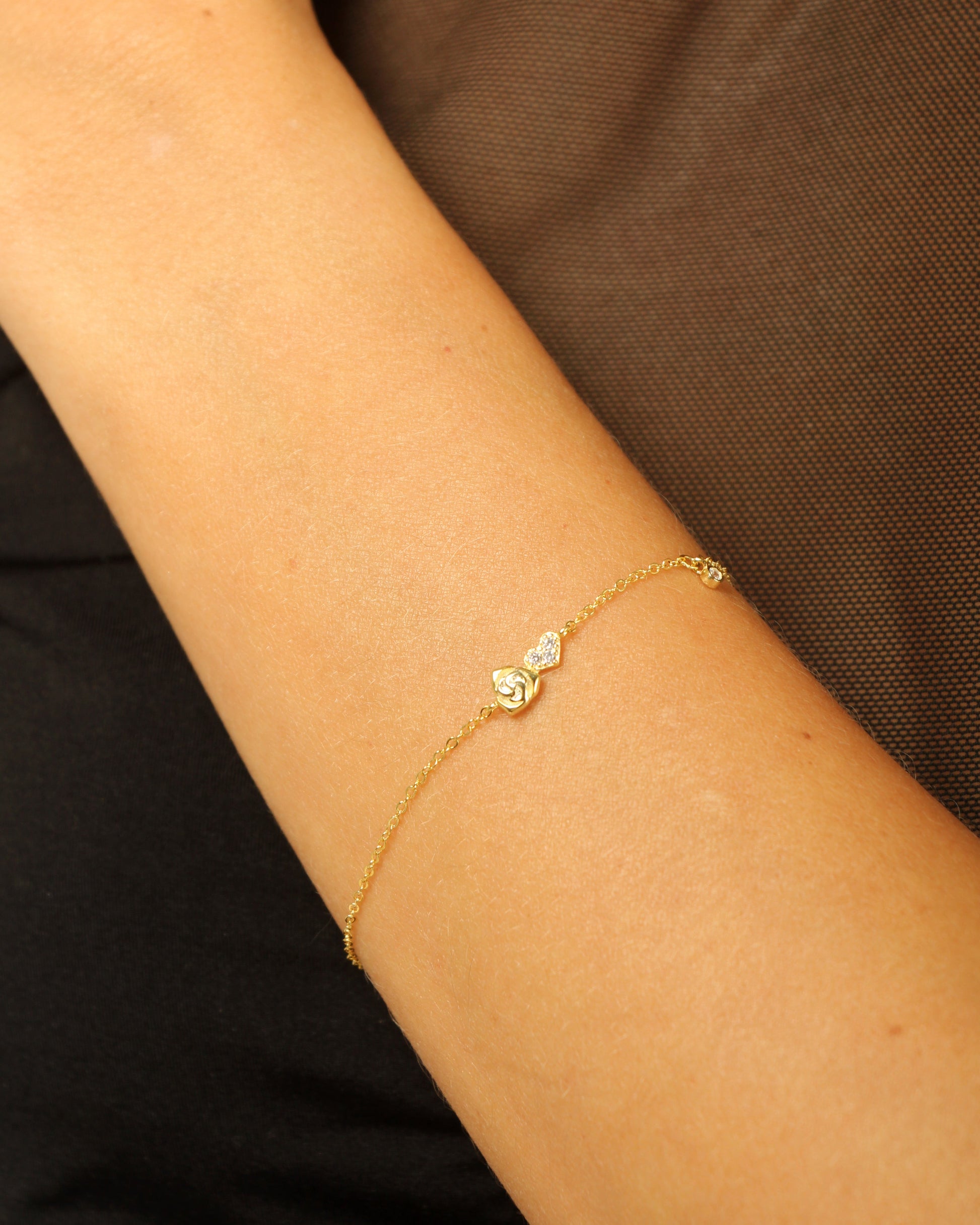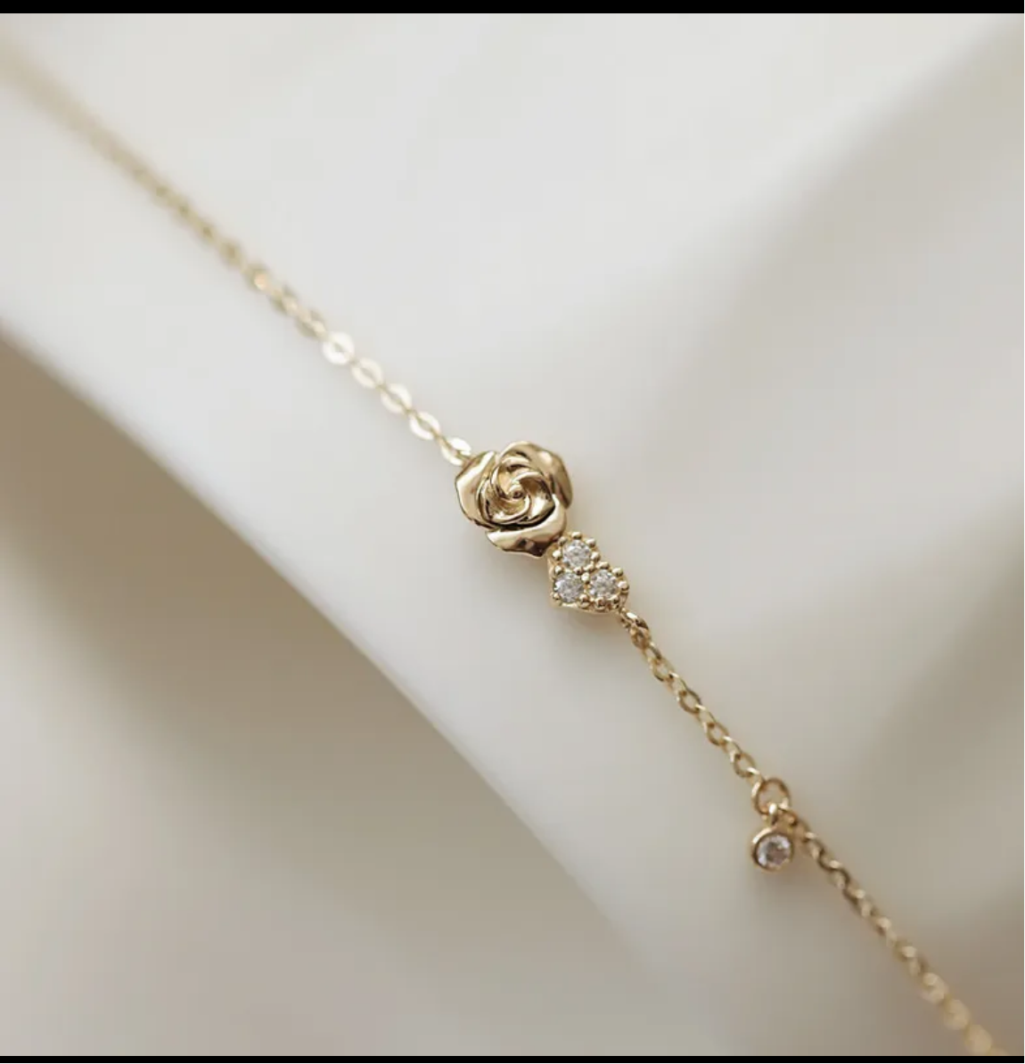 VANESSA est un bracelet de base et simple, léger comme une caresse, orné d'un pendentif rose délicat en argent sterling 925 plaqué or 14K. Il est parfait pour toutes les saisons et toutes les occasions, ajoutant de la douceur et de l'élégance à toi et ta fille. La chaîne de câble en argent sterling en fait un accessoire luxueux et exclusif. Poids de 2g.